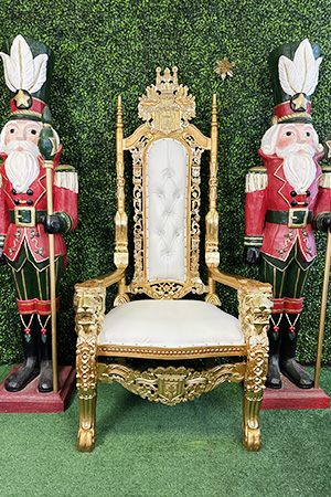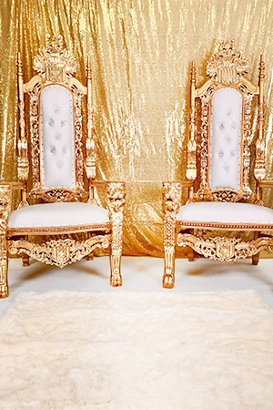 Rent our beautiful Lion King Throne Chairs in white and gold. The perfect party rental for weddings, trade shows, and private events in Las Vegas, Nevada. We offer free delivery to any location in the Las Vegas area. Let us show you why we are the best throne chair rental service in Sin City.