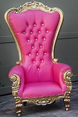 The Pink and Gold Throne chair rental features an attractive, sophisticated design that adds a touch of grace to any event. Whether it's a birthday party, bachelorette party, wedding, sweet 16, trade show, graduation, or private party. Add a gorgeous pop of pink to your event with our stunning throne chair rentals.
