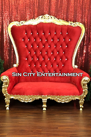 Our stunning red throne loveseat rental in Las Vegas. Bring some royalty into your event with this beautiful queen loveseat throne chair. This loveseat throne would look amazing in any setting, including celebrations for the holidays, weddings, bridal showers, birthday parties, and more.